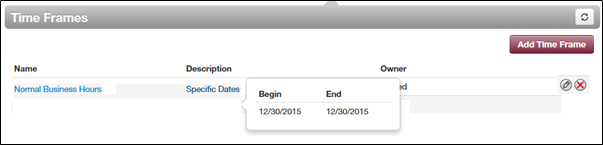 Time frames can be both shared (system-wide and set by the administrator) or personal to your extension. You can add a time frame to your extension by clicking the Add Time Frame.